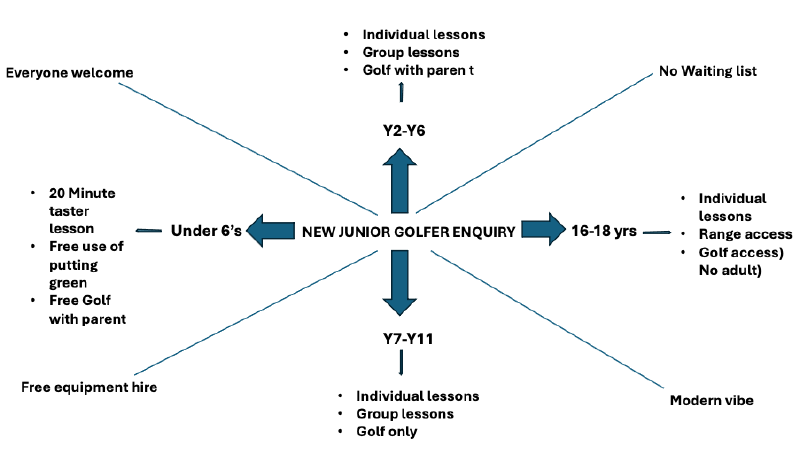 Each week a different aspect of golf is worked on using the Top Tracer driving range, Putting green, practice bunker, Par 3 Academy course and main course. To find out more or book a free trial, just get in touch.